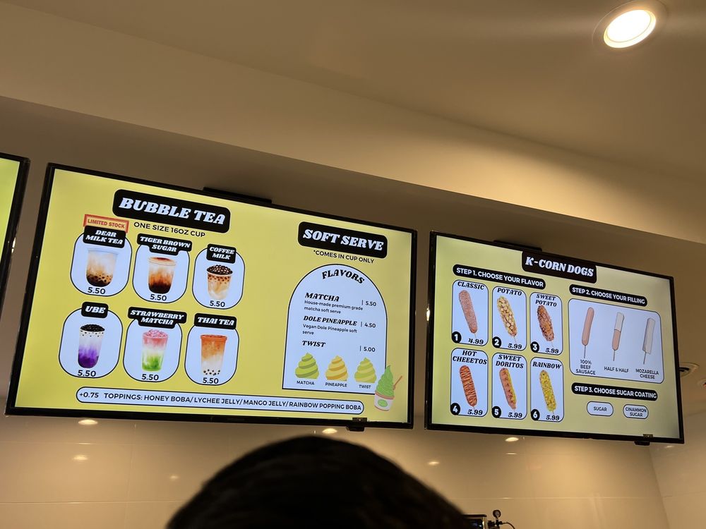 Dear Donuts, located at 570 S Randall Rd in St. Charles, IL, offers a unique and delicious menu that includes not only traditional donuts but also Korean corn dogs and bubble tea. Customers rave about the quality of the donuts, describing them as light, fluffy, and generously filled with gourmet flavors. The coffee and specialty drinks are also a hit, with options like Coffee Milk Bubble Tea and Tiger Brown Sugar Bubble Tea standing out. The vibrant and clean atmosphere, along with friendly service, adds to the overall dining experience. While the prices may be on the higher side, the taste and variety of offerings make it worth it. If you're in the area, Dear Donuts is definitely worth a visit for a sweet and savory treat unlike any other.